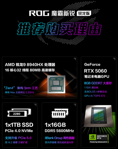 散热设计:均采用ROG冰川散热架构,确保高负载下性能稳定。